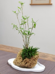 所以我们日常看到的吸水石盆景可以不拘泥于植物本身的美,可以看到石体、植物综合的美,因为这个时候,吸水石也是你的作品。